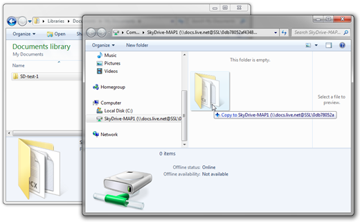 Windows Live provides users with a large online storage area, this area is normally used for photo albums and for document storage. From SkyDrive the “Add files” option does not permit uploading folders. Folders can be uploaded by mapping a SkyDrive folder as a network drive so it can be shown in Windows Explorer.