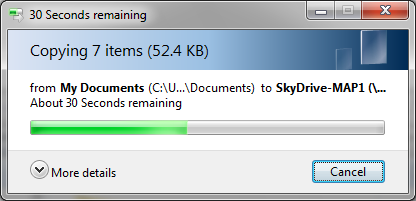 The selected folder will be copied to the SkyDrive folder – since this is an Internet upload, the time will depend on the connection speed.