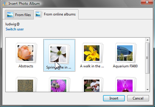 click Insert to get the process started. Live Writer downloads the pictures from the album in order to create the graphics. An example of a SkyDrive album is shown at the end of this post.