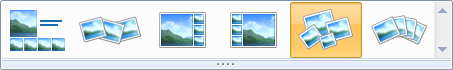 The album will be shown by a collection of thumbnails, the album title, and a couple of hyperlinks. A new “Photo Album Tools” Ribbon tab is available whenever the album art is selected. The most useful and interesting tools are in the Album styles section of the tab: A half dozen layout styles are shown. The first, default, layout, shows the thumbnails the same way as pictures are shown in a photo email. Two other layouts show the pictures in a flat