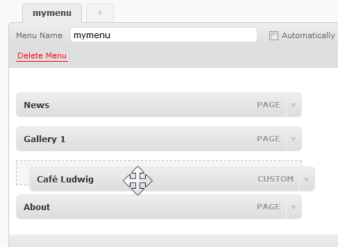 Here you can rearrange the order of the menu items by just dragging an item from one place to another. The illustration above shows such a maneuver.