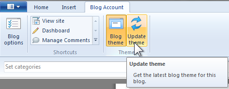 Back in Writer click Update theme in the Blog Account tab. The update process should now run.
