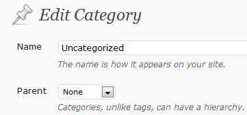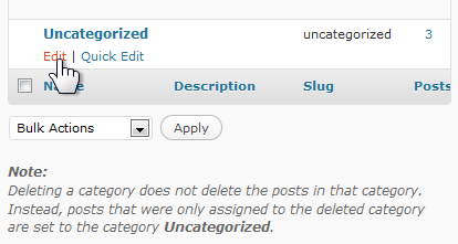 Find the Uncategorized listing in the table. Option links become visible when you move pointer to just below the category name. imageClick Edit.