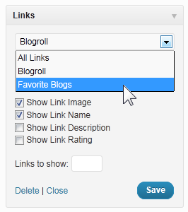 WordPress offers an array of “Widgets’” hat can be placed in sidebars to show a wide variety of material. The “Links” widget is one of those and shows links to other blogs and sites. This is one widget that is not too easy to use as a number of steps are required to set it up the way you like.