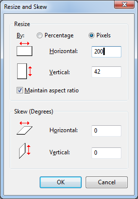 Click Resize. In this dialog click Pixels. Then enter the size for the width of the image. In my case that is 200. Leave the checkmark on Maintain aspect ratio so the image will not get distorted. imageClick OK.
