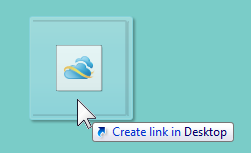 In the browser address field note the small SkyDrive logo in front of the address. Move your pointer to that symbol. The message balloon will say “Drag to taskbar to pin site”. Drag the little logo to a blank area of your desktop. The SkyDrive logo will be bigger and the imagemessage balloon will say “Create a link in desktop”. imageJust let go the mouse button to drop the link. You will now have a desktop shortcut to your SkyDrive.