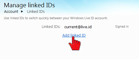 The Manage linked IDs page shows what accounts are linked and has an Add linked ID link.