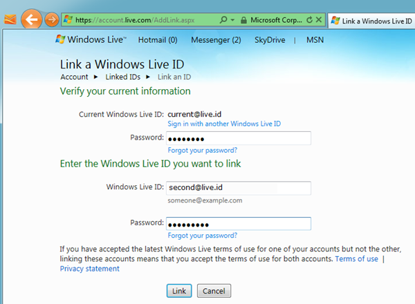 UPDATE – July 2013: Sorry folks, Microsoft no longer allows linking of accounts.