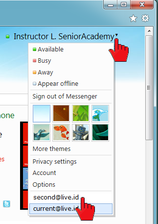 Note the other options on the drop-down menu. I like to assign different themes to my different accounts to keep myself reminded of which account I am in.