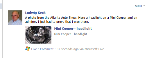 The method provided on SkyDrive shares a link to the photo and its album on SkyDrive, the photo is not actually copied to Facebook. Here is an illustration of how it appears on Facebook. When a viewer clicks on the photo thumbnail or the title she will get something like this:![]()