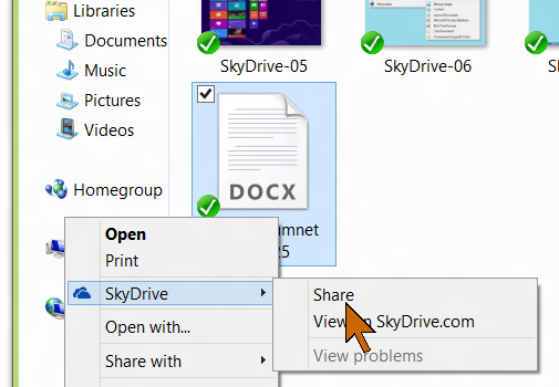 SkyDrive has been thoroughly integrated into the fabric of Windows 8. The SkyDrive desktop app brings access to SkyDrive right into File Explorer – Windows Explorer of prior Windows editions. An earlier post, from before Windows 8 was released, shows a method for providing access to multiple SkyDrive accounts (Can I install multiple SkyDrive apps on my desktop?). That method works just fine in Windows 8. This article expands on that and provides some additional information.