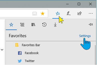 If your Favorites Bar is not showing turn it on by clicking the “starrish” icon – see the illustration here. Then click Settings.