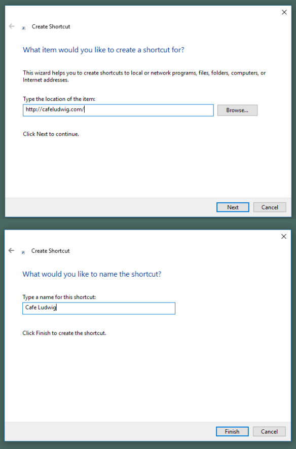 Click Finish. You will now have a shortcut to the website on the desktop. When you double-click it it will open the browser and go to the site.