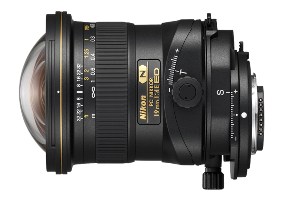 This is a photo of the Nikon PC Nikkor 19mm 1:4 E ED wide-angle tilt-shift lens. Notice how the whole lens is shifted relative to the lens mount. The range of this lens is 12 mm in either direction. That is half the height of the full frame sensor (about 24 by 36 mm). If you do architectural photography this is a very useful tool.