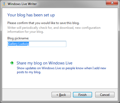 There is an option to “Share my blog on Windows Live”. Click this to make this connection.