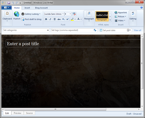 All you need to do now is enter a post title, the actual post text and click Publish (on the Home tab) to get the post on your blog. It really is that simple.
