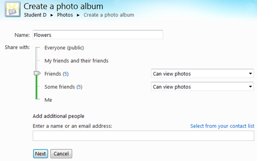 The default is to create a new album. Note the text entry box wimageith the flashing cursor. Just type the name that you want to assign to the new album. For a new album, there is also a sharing selector. You can specify sharing here. Of course, you can change that later in SkyDrive.