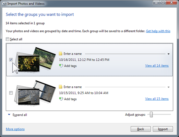 Note that you can inspect the photos in each group – click “View all … items”, and can even check or uncheck the individual photos to be imported.
