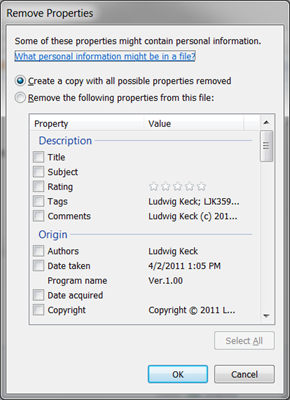 Notice that option on the bottom: “Remove Properties and Personal Information“.