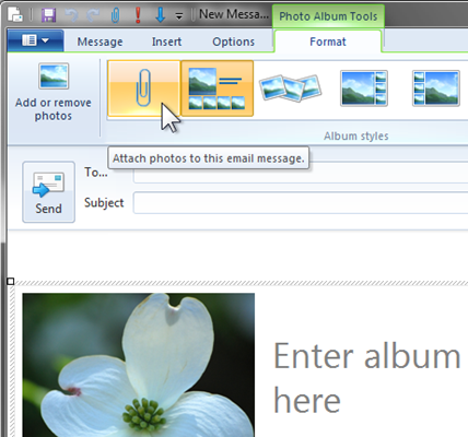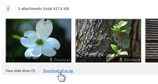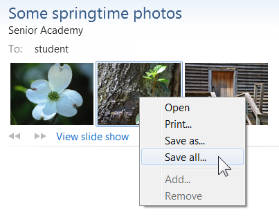 If you are using a Microsoft email service your online view of the email with attached pictures will look something like this: